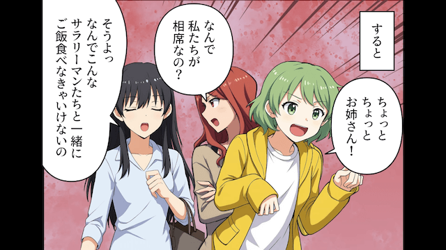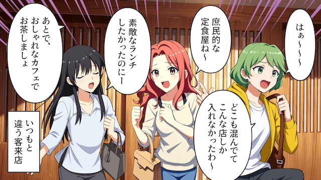 主人公が働く定食屋は、お昼どきにはいつもサラリーマンで混雑していました。 しかしある日、いつもと違う客層である女性客3人組が来店したのです。