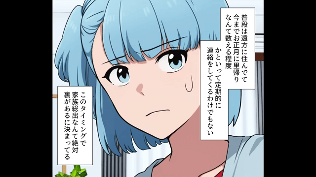 義母は、正月に義姉が家族と一緒に来ることを主人公たちに話しました。 それを聞いた主人公は「このタイミングで家族総出なんて絶対裏があるに決まってる」と考えて…。