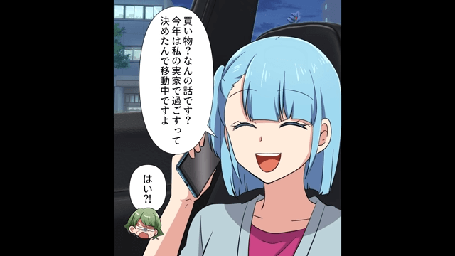 主人公たちが出かけてから数時間後、義母が主人公に電話をかけてきました。 そして義母が「あんたらいつまで買い物してるの!?」と怒ると、主人公は実家に向かっていることを義母に伝えたのです。