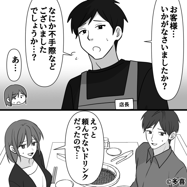 今回は『焼肉屋で「私たちのテーブルだけ」ミスを連発されたワケ』を紹介します。 店員たちの接客態度に残念な気持ちになりつつも、乾杯をしようとした主人公と同僚。 しかしドリンクも、注文したものとは違い…。