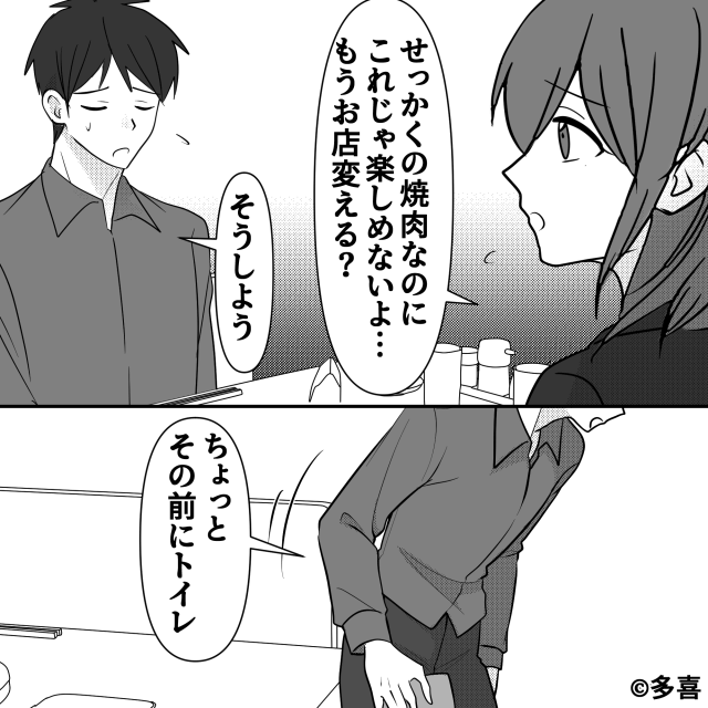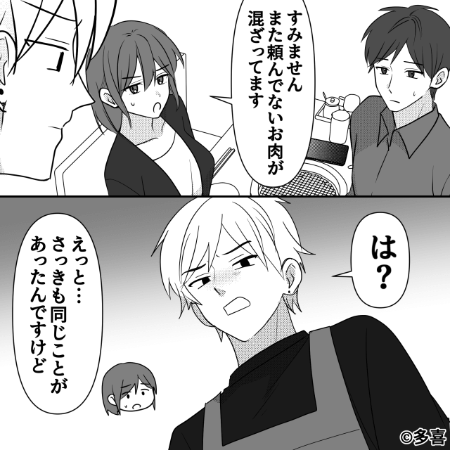 今回は『焼肉屋で「私たちのテーブルだけ」ミスを連発されたワケ』を紹介します。 店員たちの接客態度の悪さを、店長に伝えた主人公。 するとその様子を、男性店員が見ていて…。