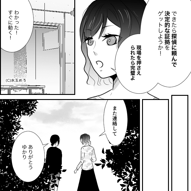 弁護士の友人に相談し「絶対に後悔させたい!」と協力を求めた主人公。 そして友人のアドバイス通り、探偵に証拠集めを頼むことにしたのでした。