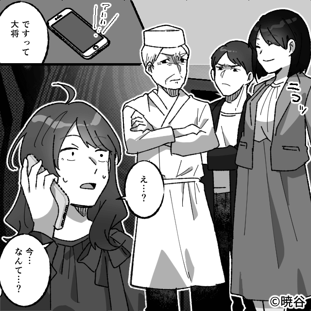 「最初からこうするつもりだった?」と主人公が尋ねると、同級生は「当然じゃない!」と笑いながら答えます。 しかしその発言は、大将である義父に聞かれていて…。