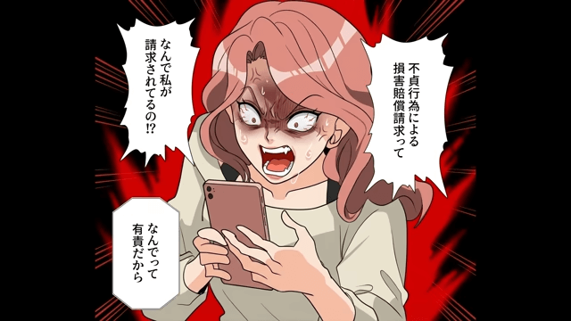 3人での話し合いを終えた後、妻は荷物をまとめて家から出ていきました。 しかし数日後、妻は主人公に電話をかけ「不貞行為による損害賠償請求って、なんで私が請求されてるの!?」と怒鳴って…。