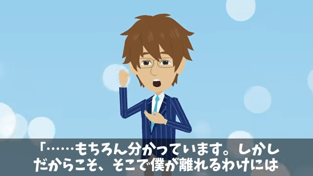 ライバル会社の社長は、取引先の社長の会社の内情について、主人公もわかっているはずだと言ってきました。 それに対し主人公は「…もちろんわかっています。しかしだからこそ、そこで僕が離れるわけにはいかないんです」と答えて…。