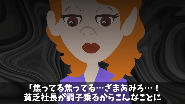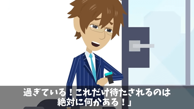 さらに数時間待ち続けた主人公は「いくらなんでもおかしい!」と考えます。 一方、取引先の女性社員は「焦ってる焦ってる…ざまあみろ…!」と思いながら、主人公の様子を見ていました。