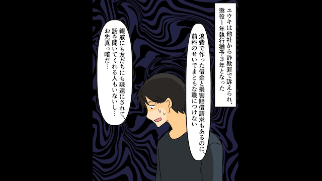 借金を抱えた挙句、義両親から絶縁されてしまった夫は、必死に主人公たちにすがりますが、誰も助けてはくれず…。 夫は詐欺罪で訴えられてお先真っ暗な人生を送り、主人公は同僚と結婚して幸せに過ごしたのでした。