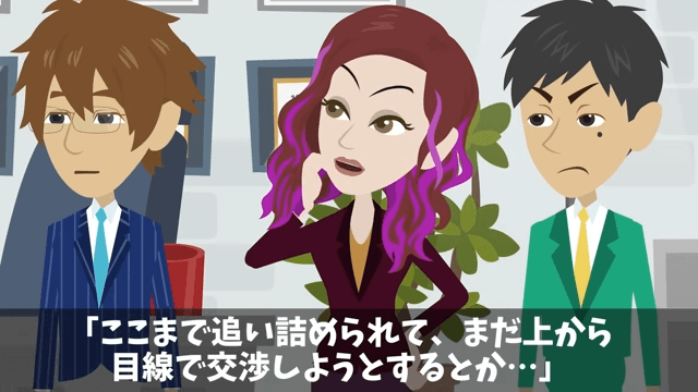 取引先の女性社員は、このままでは自分の立場が危ういからここに来たと主人公に言いました。 それを聞いたライバル会社の社長は「まだ上から目線で交渉しようとするとか…」と呆れて…。