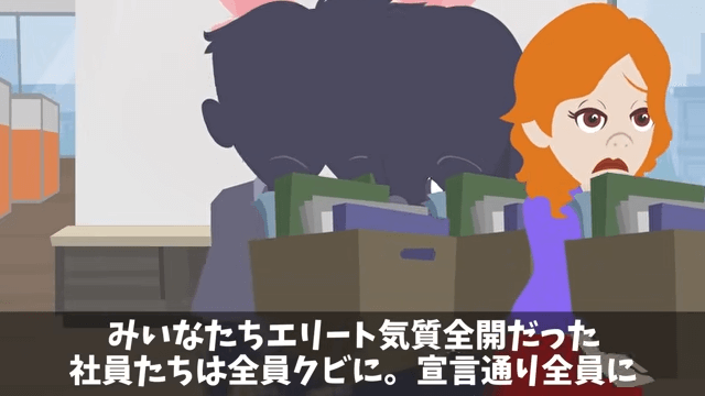 取引先の社長は元から取引先の女性社員がリストラの対象であったことを明かしました。 その後、取引先の女性社員のように会社を傾かせたエリート気質の社員たちは全員クビになり…。