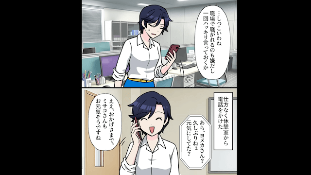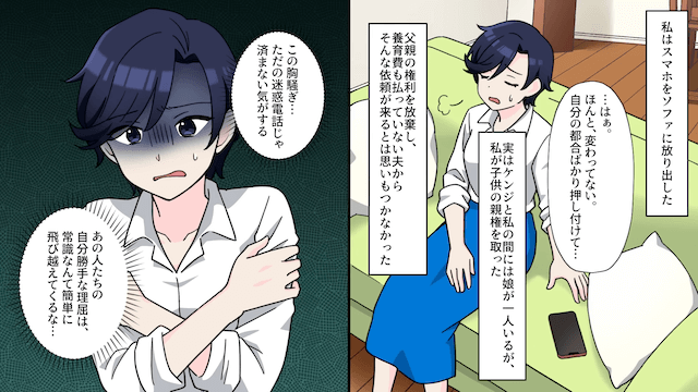 翌日、元夫が義母に電話をするよう頼んできたため、主人公は仕方なく義母に電話をかけたのでした。