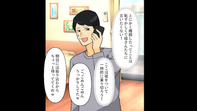 義母から仕送りを催促された夫は、離婚したことを言い出せず「明日には振り込むから」とごまかしました。 そして頭を抱えた夫は、再婚相手を探して頼ろうと考えて…。