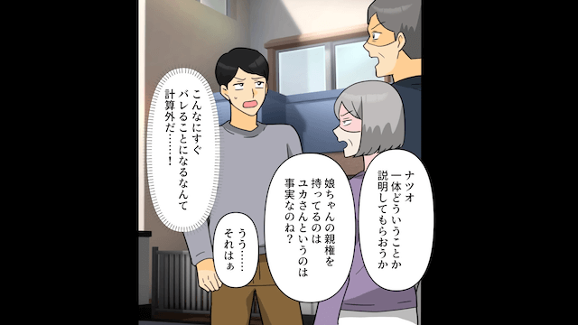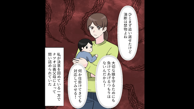 義両親は逃げ去った夫を追いかけ、家から出ていきました。 そして義両親が夫に説明を求めると、夫は「娘の親権は俺が持ってるのに、彼女が娘を連れ帰ったんだ!」と再び嘘をついて…。