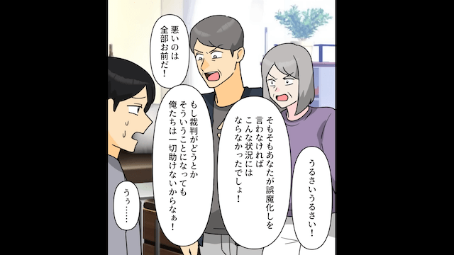 今回は『離婚後…義両親「孫の養育費振り込め!」嫁「私が育ててるけど?」⇒真実を伝えた結果』を紹介します。 にらんできた夫に「お義母さんたちに言い訳をしたほうがいいんじゃない?」と告げた主人公。 夫の後ろには、真実を知って激怒している義両親が立っていて…。