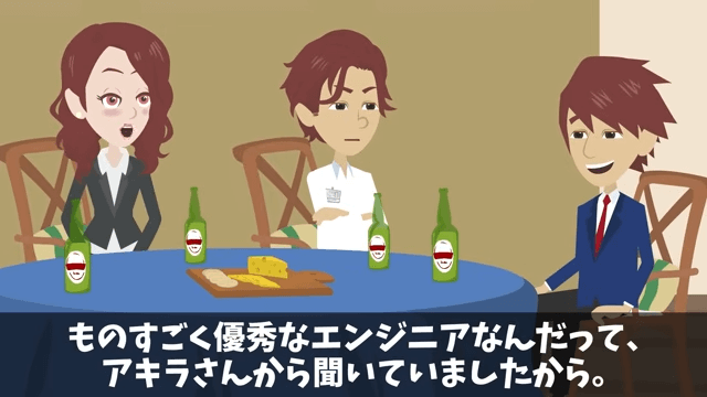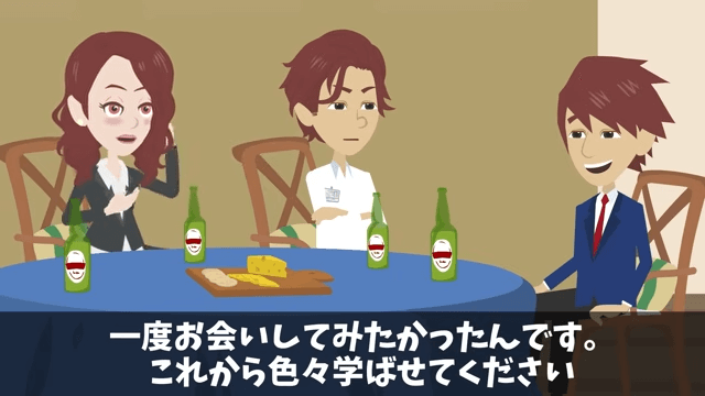今回は『懇親会で…同僚「海外かぶれは消えろ!(笑)」俺「はーい!」後日⇒俺の正体を知り顔面蒼白に』を紹介します。 友人は準備が間に合わなかったため、今回は4人で主人公の復帰を祝うことにしたと説明しました。 それを聞いた主人公は「いや、これで十分だよ」と言い、女性社員に「はじめまして」と挨拶をして…。
