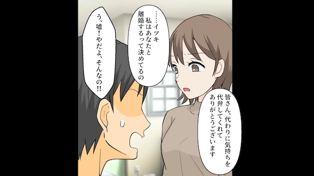 離婚する気はないという夫に、義父は「離婚しないと主張する権利なんてお前にはないんだよ!」と激怒し、主人公は夫に離婚を突きつけました。 さらに女性も「お金払って終わりにしちゃお?」と夫に離婚を勧めて…。