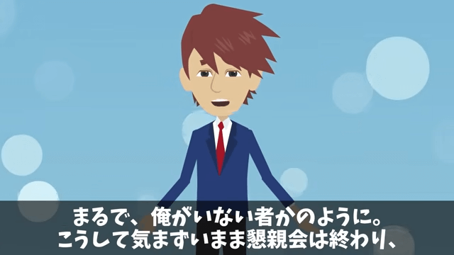 今回は『懇親会で…同僚「海外かぶれは消えろ!(笑)」俺「はーい!」後日⇒俺の正体を知り顔面蒼白に』を紹介します。 場の雰囲気を悪くする同僚に、主人公はなぜここに来たのか尋ねました。 しかし同僚は、まったく答えようとせず…。