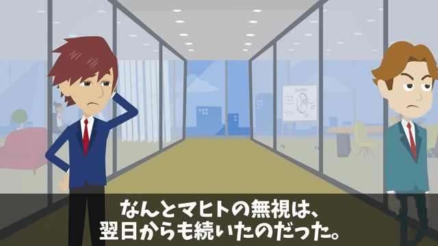 懇親会中、同僚はずっと主人公のことを無視し続けました。 さらに同僚の無視は、仕事が始まった翌日も続いていたのです。