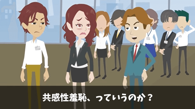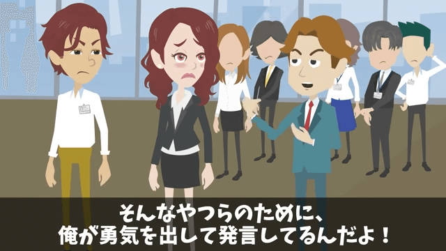 同僚が主人公を非難し始めたため、友人が同僚を注意しました。 すると友人は、主人公を恥ずかしく感じている人のために、自分が勇気を出して発言しているのだと言い…。