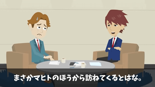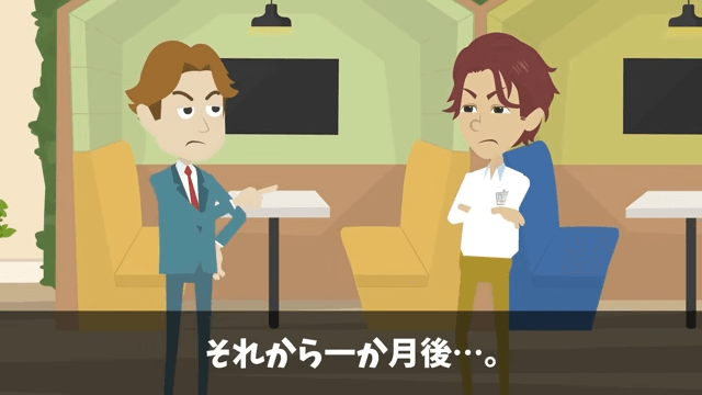 同僚は、自分のほうが主人公よりも優れていることを証明してみせると友人に言いました。 しかし1ヶ月後、同僚は主人公のもとを訪れていて…。