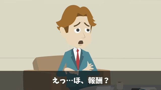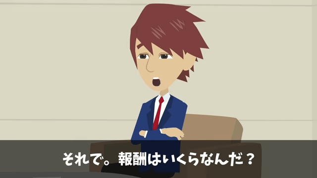 主人公は、会社にはお世話になった人や尊敬している人がいるから今回ばかりは請けてもいいと同僚に伝えました。 そして主人公が「報酬はいくらなんだ?」と尋ねると、同僚は「えっ…ほ、報酬?」と戸惑って…。