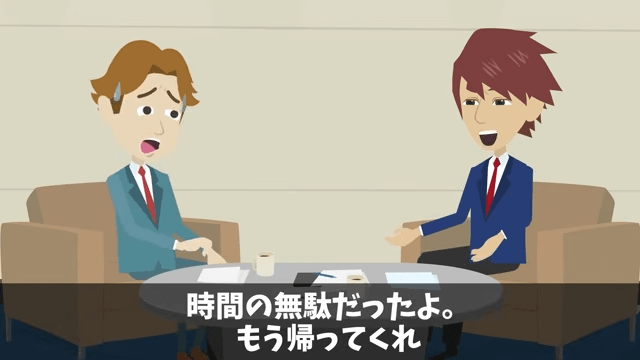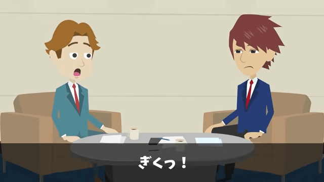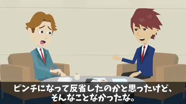 同僚がまったく反省していないことを知った主人公は「時間の無駄だったよ。もう帰ってくれ」と言いました。 すると同僚は「ちょ、ちょっと待った!わ、わかったよ、会社にも言う」と慌て始めて…。