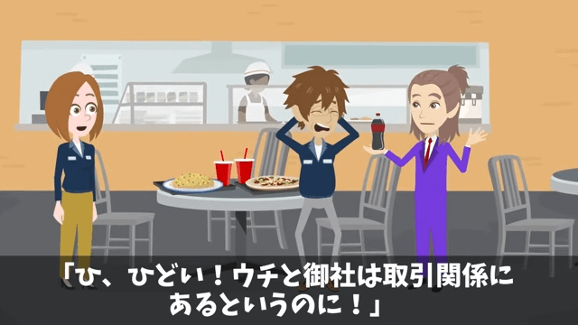 今回は『俺に“ジュースをかけた”社員「下請けは食堂使うな」直後⇒俺「取引先ですが?」社員「え?」』を紹介します。 突然、取引先の部長からジュースをかけられてしまった主人公。 するとその様子を見ていた女性社員が「ひ、ひどい!ウチと御社は取引関係にあるというのに!」と言い…。