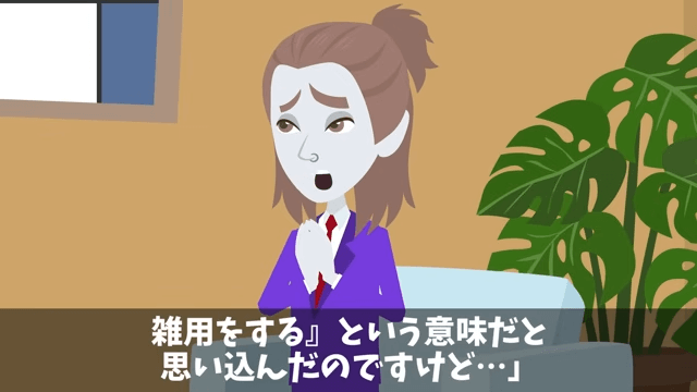取引先の部長は、雑用のためにやってきたという主人公の発言について尋ねました。 さらに取引先の部長は、雑用と聞いて主人公が下請け業者だと思い込んだのだと説明して…。