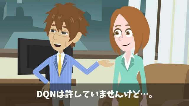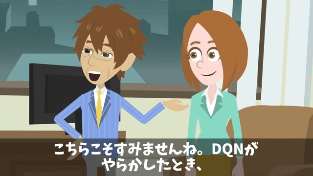 主人公たちは土下座をする取引先の部長を無視して、社長室に向かいました。 すると取引先の社長が主人公に頭を下げて謝罪してきたため、主人公は「こちらこそすみませんね」と言い…。