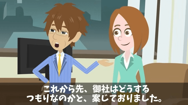 取引先の社長はもっと早く部長をクビにすべきだったと言いました。 しかし取引先の部長のことを思い出したくなかった主人公は、融資の話に切り替えることにしたのです。