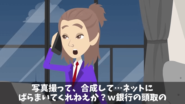 取引先の部長は嫌がらせをしたい人たちがいることを友人に伝えます。 そして取引先の部長は、主人公たちを尾行して写真を撮り、合成してネットにばらまいてほしいと友人に頼みました。