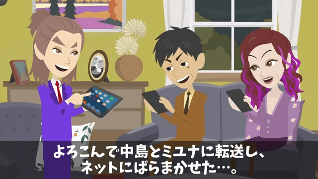 主人公たちの尾行中に予期せぬ出来事が起こり、驚きの表情を見せた友人。 その後、友人から写真を送ってもらった取引先の部長は、さっそくその写真を両親にばらまかせたのです。