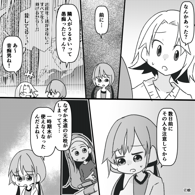 今回は『初めての一人暮らし、隣人はヤバい男でした。』を紹介します。 トラブル続きで大家もあてにならず、心底がっかりした主人公。 そして翌朝、再び水が出なくなり…。