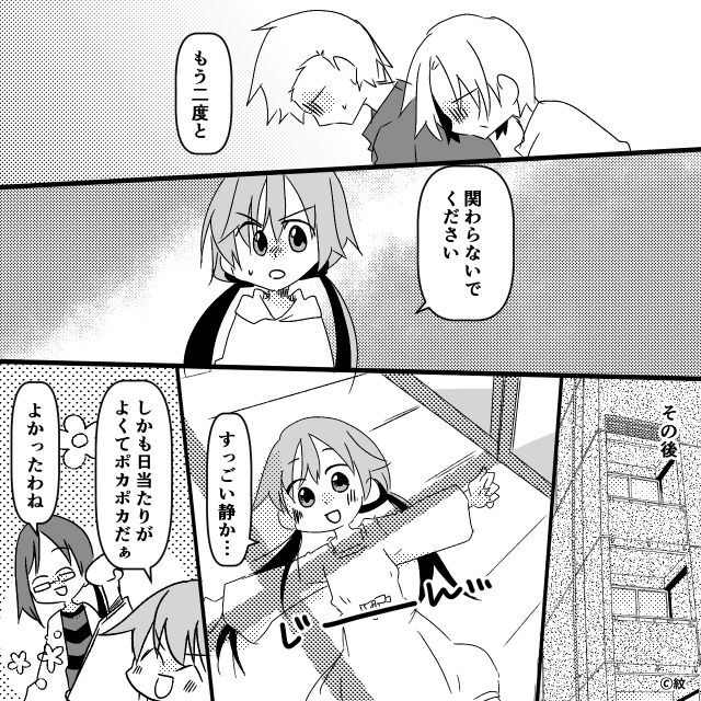 今回は『初めての一人暮らし、隣人はヤバい男でした。』を紹介します。 母が顧問弁護士に相談したことで、大家はアパート管理に関して指導を受け、隣人は警察のお世話になり…。 顔面蒼白の2人に、母は「最後くらい娘にしっかりと謝罪してくれますよね?」と怒鳴ったのでした。