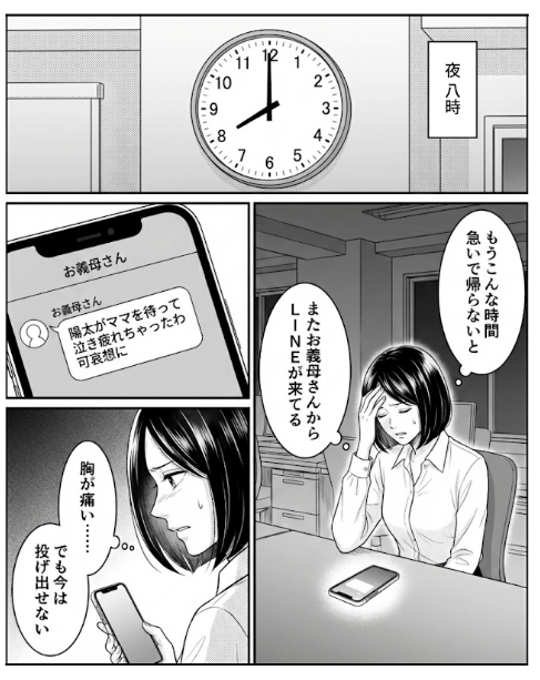 信じていた義母の「機械音痴」という言葉が、真っ赤な嘘かもしれない。 SNSに晒された自宅の風景と、自分を貶める冷酷な言葉の数々に、妻の心は凍りつきます。 仕事を頑張るほどに、家の中は荒れ、子どもとの距離は遠ざかっていく…。 それは本当に、妻自身の不徳が招いた結果なのでしょうか。 家族という名の檻の中で、一歩ずつ巧妙に、そして確実に居場所を奪われていく恐怖。 誰を信じ、何を頼ればいいのかわからなくなったとき、救いの手は意外なところから差し伸べられます。 奪われた「しあわせ」を取り戻すための、反撃の灯火。 絶望の淵に立たされた女性が、真実を暴くために動き出す決意の物語です。