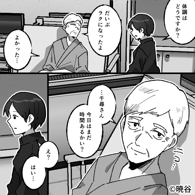 主人公が夫と義妹と言い合いをしていると、義父の体調が悪化。 主人公はすぐに義父を病院に連れて行き、入院が決まります。