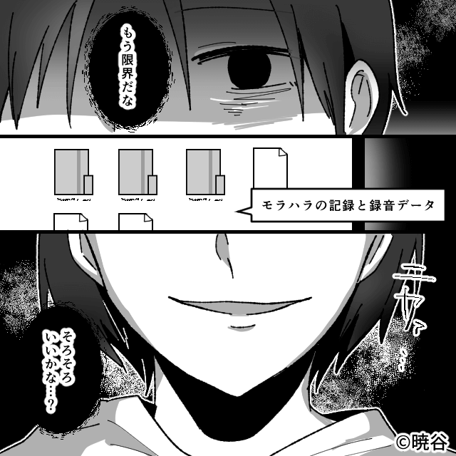 主人公は「もう限界だな。そろそろいいかな?」と考えながら、集めたモラハラの証拠を眺めるのでした。