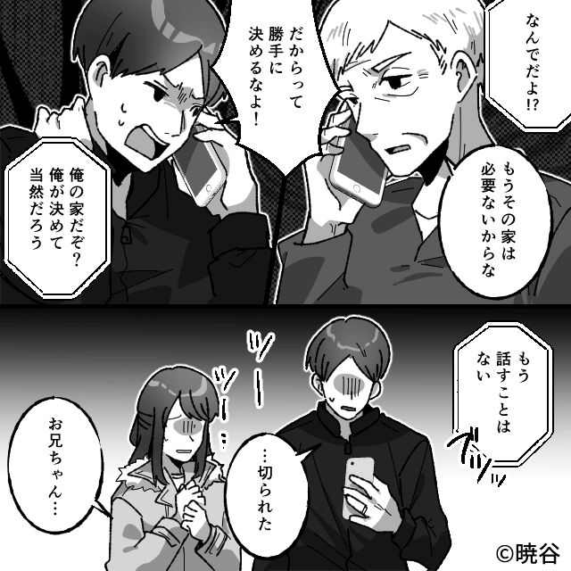 家の売却に気づき、慌てて義父に電話をした夫。 しかし義父に「もう話すことはない」と言われ、一方的に電話を切られてしまいます。