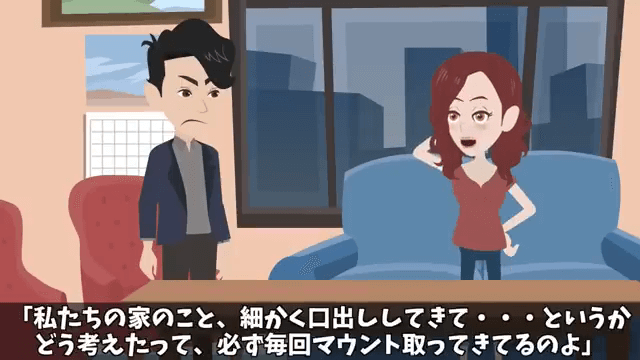 夫は義両親に対する主人公の態度を注意してきました。 そこで主人公は「私たちの家のこと、細かく口出ししてきて…というか、どう考えたって、必ず毎回マウント取ってきてるのよ」と反論して…。