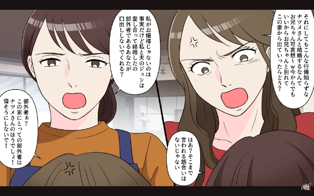 今回は『お嬢様育ちの義妹の結婚式で私を見下した新郎の話』を紹介します。 一緒に住んでいる義妹から何かにつけて学歴をバカにされ「お兄ちゃんと別れてこの家から出ていったらどう?」と言われていた主人公。 そして主人公が「部外者であるあなたが口出ししないでくれる?」と言い返すと、義妹は「あなたが嫁いでくるまでお兄ちゃんは私のものだったの!」と騒ぎ出して…。