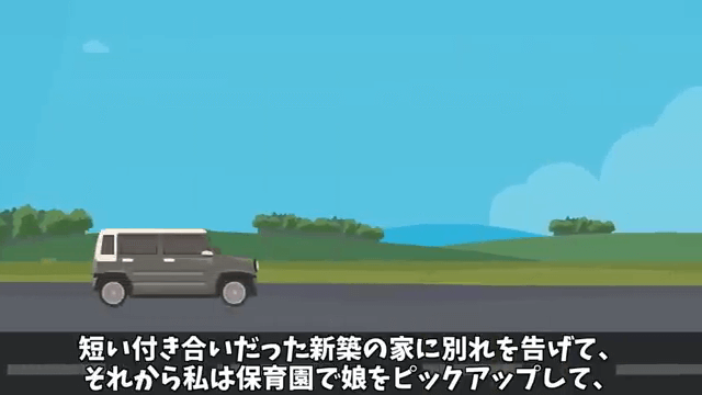 主人公は呆然としている夫と義両親をその場に放置し、バッグに荷物を詰め込みました。 そして保育園まで娘を迎えにいき、そのまま実家に向かったのです。