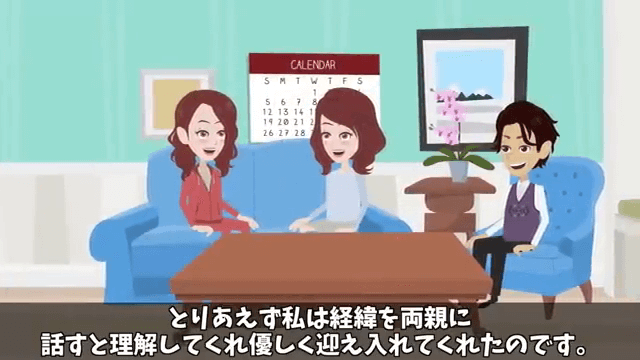両親は主人公がひどい顔色だったため、とても心配していました。 そして主人公が経緯を話すと、両親は主人公を優しく迎え入れてくれたのです。
