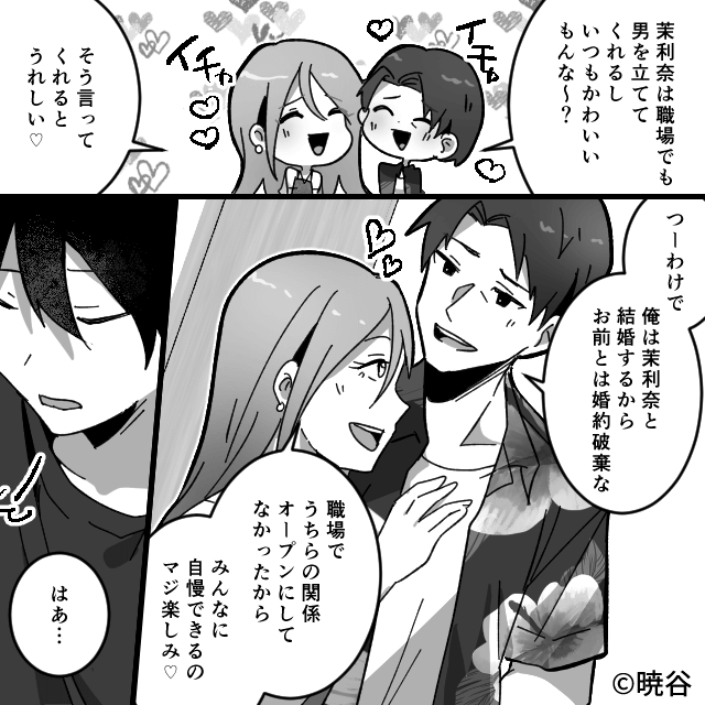 同居の話がなくなってから数週間後、家に浮気相手を呼び、婚約破棄を突きつけてきた婚約者。 しかし主人公は「私に婚約者はいないけど?」と答えます。