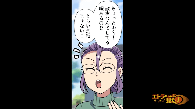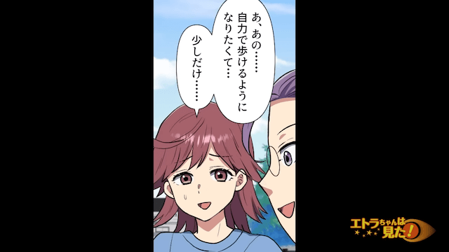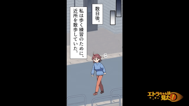 長女の言葉で気持ちが落ち着いた主人公は、ママ友と距離を置く決意を固めました。 そして数日後、主人公が歩く練習のために散歩をしていると、駆け寄ってきたママ友に「散歩なんてしてる暇あるの!?」とイヤミを言われて…。