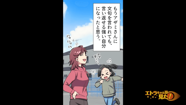 努力の結果、見違えるように元気になった主人公は、ママ友に文句を言われても言い返せる強い自分になったと感じていました。 そして数年が経ったころ、ママ友の家から叫び声が聞こえて…。