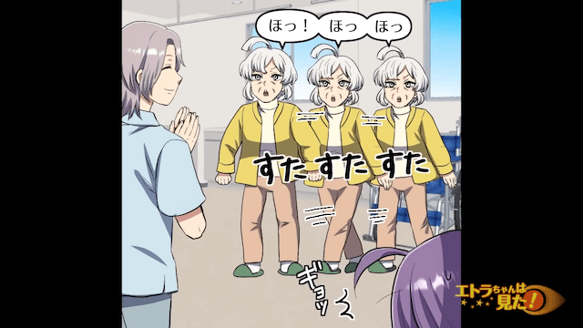 今回は『ママ友「産後に動けないとかサボり?(笑)」とバカにしてきた女の末路』を紹介します。 自分の母の症状を介護スタッフに伝えようとするママ友。 しかし介護スタッフに優しく声をかけられたママ友の母は、普段できないことができてしまい…。