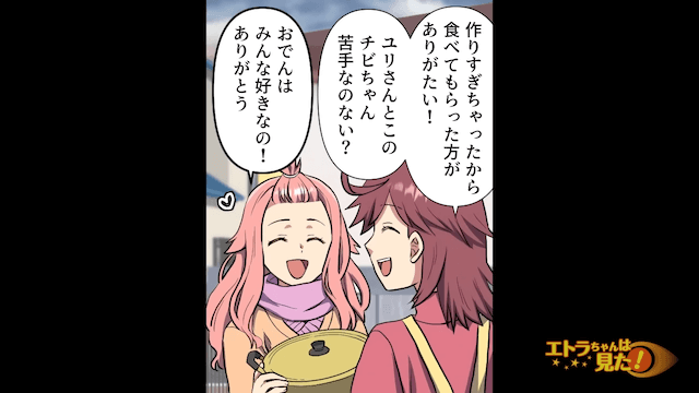 地獄のような毎日から抜け出し、笑顔で暮らしている主人公。 気まずくなっていたママ仲間の女性とも、円満な関係を築くことができていて…。