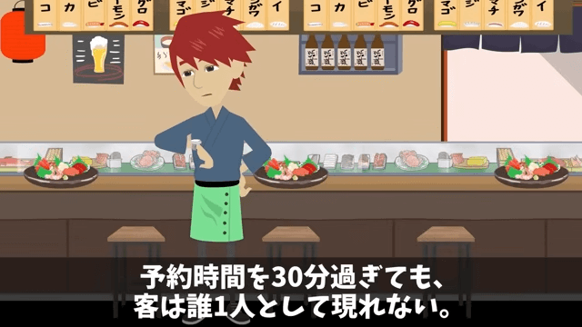 今回は『私の寿司屋を元同級生60人が無視してドタキャンした話』を紹介します。 壁の時計と静かな店内を交互に見つめながら客の到着を待っていた主人公。 この日は同級生が主人公の店で同窓会をするということで、60人分の予約が入っていたのですが…。