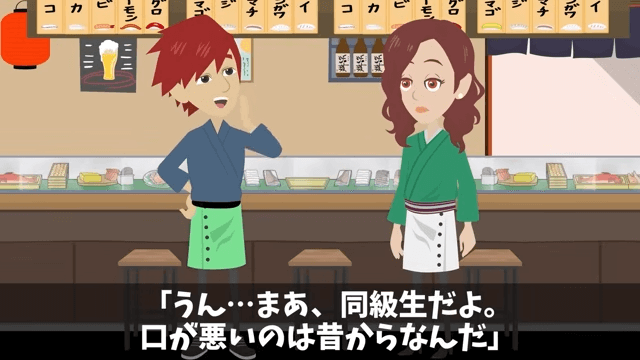 今回は『私の寿司屋を元同級生60人が無視してドタキャンした話』を紹介します。 同級生が味見をしたいと言ってきたため、主人公は寿司を握って提供しました。 すると寿司を食べた同級生が「酸っぱいだけじゃねえか。やっぱお前にはセンスがねえな」と言ってきて…。