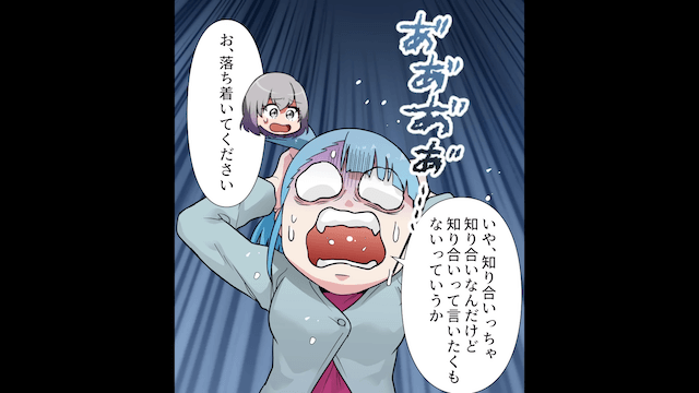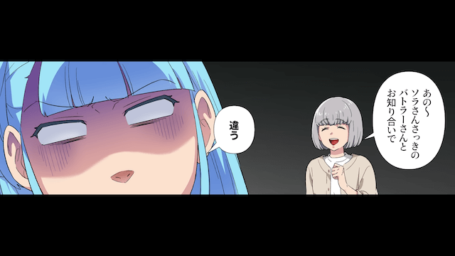 バトラーの名札を見て知り合いだと気づいた主人公は、途端に青ざめました。 その後、部下に「さっきのバトラーさんとお知り合いで…」と言われた主人公は「知り合いなんだけど知り合いって言いたくもないっていうか…」と取り乱して…。