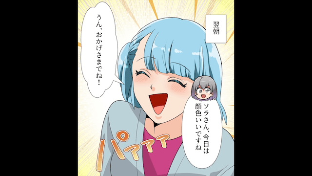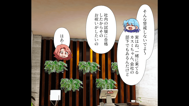 主人公と同級生が言い合いをしていると部下が起きてきてしまったため、同級生は主人公にイライラしつつも謝罪をして出ていきました。 翌朝、元気になった主人公は部下のお祝いをしたいと同級生に話して…。